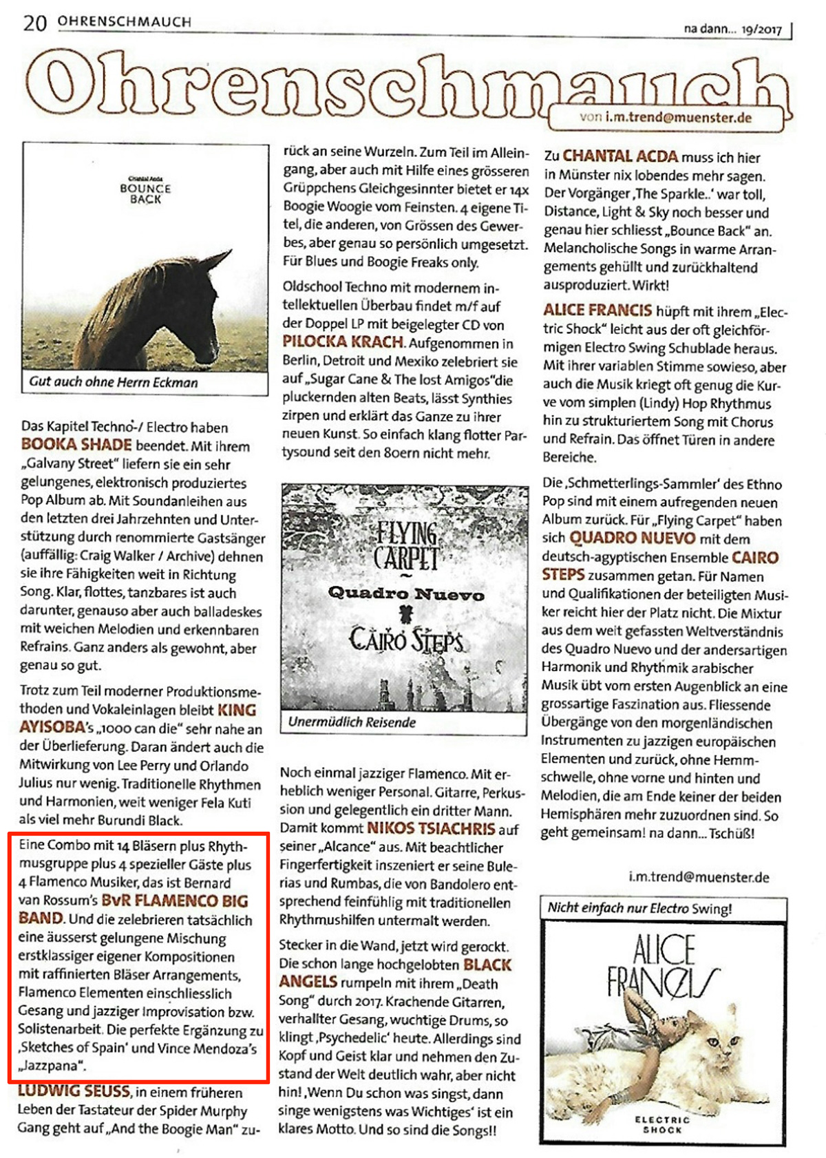 The new BvR Flamenco Big Band album “Del Rio a la mar” will be released in Bimhuis 24/6, Lantaren Venster (Rotterdam) 25/6, Generations Festival (Apeldoorn) 17/9, Meervaart theater (Amsterdam) 5/11, […]