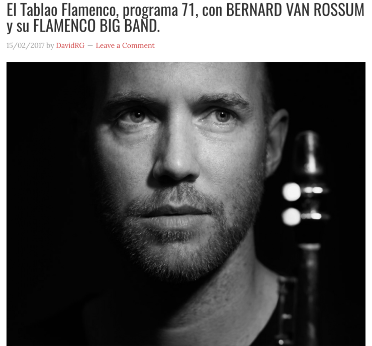 The CD fuses traditional flamenco elements like the idiomatic Flamenco voice, rhythmic guitar and the ever-present inflammatory clapping to the sound of a flexible big band. The compositions are refined and at the same time easy on the ear. An additional dimension is brought by the soloists: they maintain a strong individual voice while moving seemingly effortlessly within Van Rossum’s musical idiom. Particularly attractive are the solos of tenor saxophonist Joao Driessen ‘El Gladiador cobarde’, trumpeter Gidon Nunes Vaz and pianist Xavi Torres on “Lejos de Casa”.